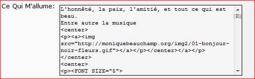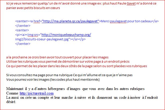 Ensuite vous aimeriez placer cette image dans votre page, ou vos messages.