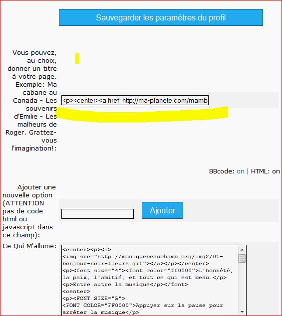 soit dans un message soit dans une rubrique de votre page